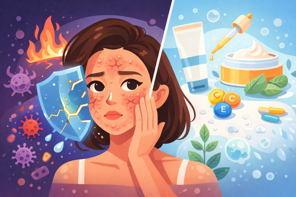 Artikel ini menjelaskan apa itu skin barrier, bagaimana mengenali tandanya ketika rusak, apa yang menyebabkannya, dan langkah konkret untuk memulihkannya.